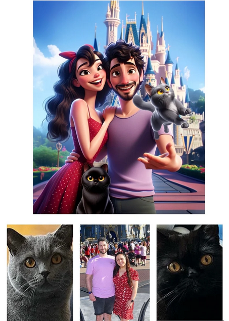 Et devinez quoi ? Vos animaux de compagnie bien-aimés sont les bienvenus pour vous amuser eux aussi ! Envoyez-moi simplement une photo de vos proches, ainsi que vos préférences de vêtements ou de thèmes d'arrière-plan.